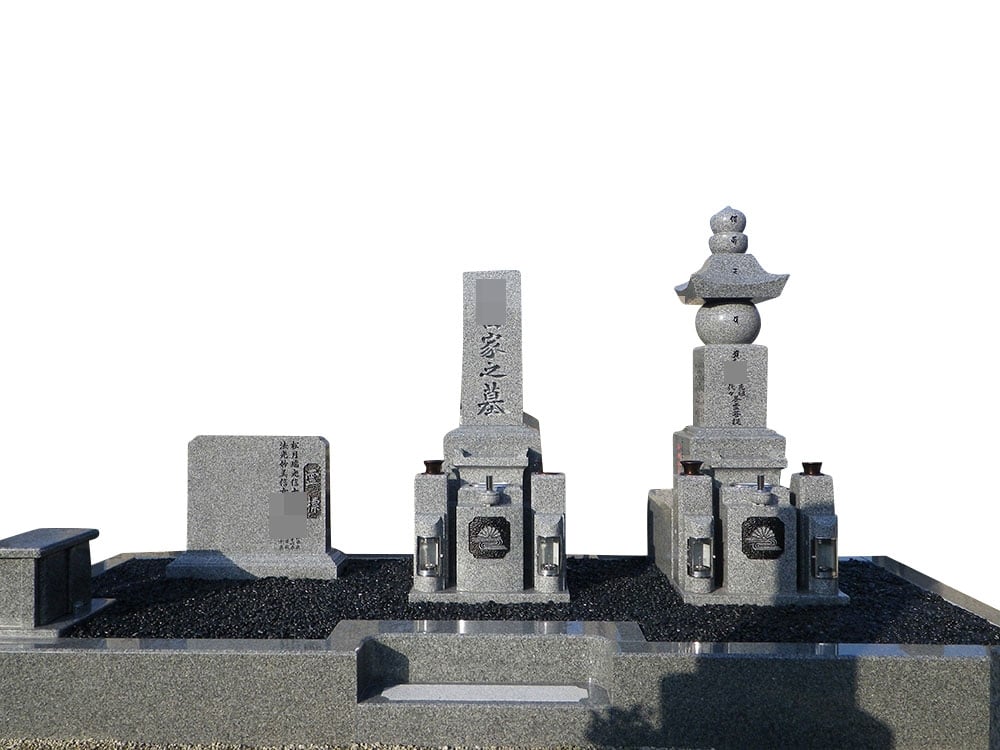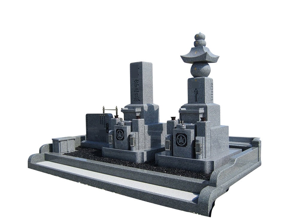 五輪塔、オアシスⅡとも、一番下の足元に四ツ石を付けて高さがあるため、納骨室が深くなり沢山のお骨を納めることが可能です。
