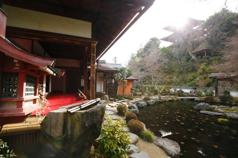 境内には、大和三名園の庭園「香藕園」、文化財である茶室「丸窓席」や写仏道場「松室院」、また1200株もの牡丹が花を咲かせる「ぼたん園」など、見どころが満載です。